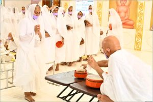 लाडनूं (kalamkala.in)। तेरापंथ धर्मसंघ के अधिशास्ता आचार्य श्री महाश्रमण के सान्निध्य में लाडनूं में सोमवार को ‘अक्षय तृतीया वर्षीतप पारणा महोत्सव’ का आयोजन किया गया। इस ऐतिहासिक अक्षय तृतीया कार्यक्रम में 54 साधु-साध्वियों, 7 समणियों एवं 371 गृहस्थ तपस्वियों ने वर्षीतप का पारणा ईक्षु-रस ग्रहण करके किया। इनमें सर्वाधिक 47 वर्षीतप करके तेरापंथ धर्मसंघ इतिहास में सर्वाधिक वर्षीतप का रिकॉर्ड बनाने वाले उग्रविहारी तपोमूर्ति मुनिश्री कमलकुमार भी शामिल हैं। इसी प्रकार मुनिश्री राजकुमार ने 38 वर्षीतप पूर्ण किए हैं। इस प्रकार यह अक्षय तृतीया इस योगक्षेम वर्ष की सबसे बड़ी उपलब्धि बन गई, जिसमें 432 तपस्वियों ने एक साथ वर्षीय तप का पारणा आचार्य श्री महाश्रमण के सान्निध्य में ईक्षु-रस बहराकर किया। योगक्षेम वर्ष में लाडनूं में आचार्यश्री महाश्रमण के सान्निध्य में पहली बार एक साथ 54 साधु-साध्वियों ने वर्षीतप का सामूहिक पारणा किया है।