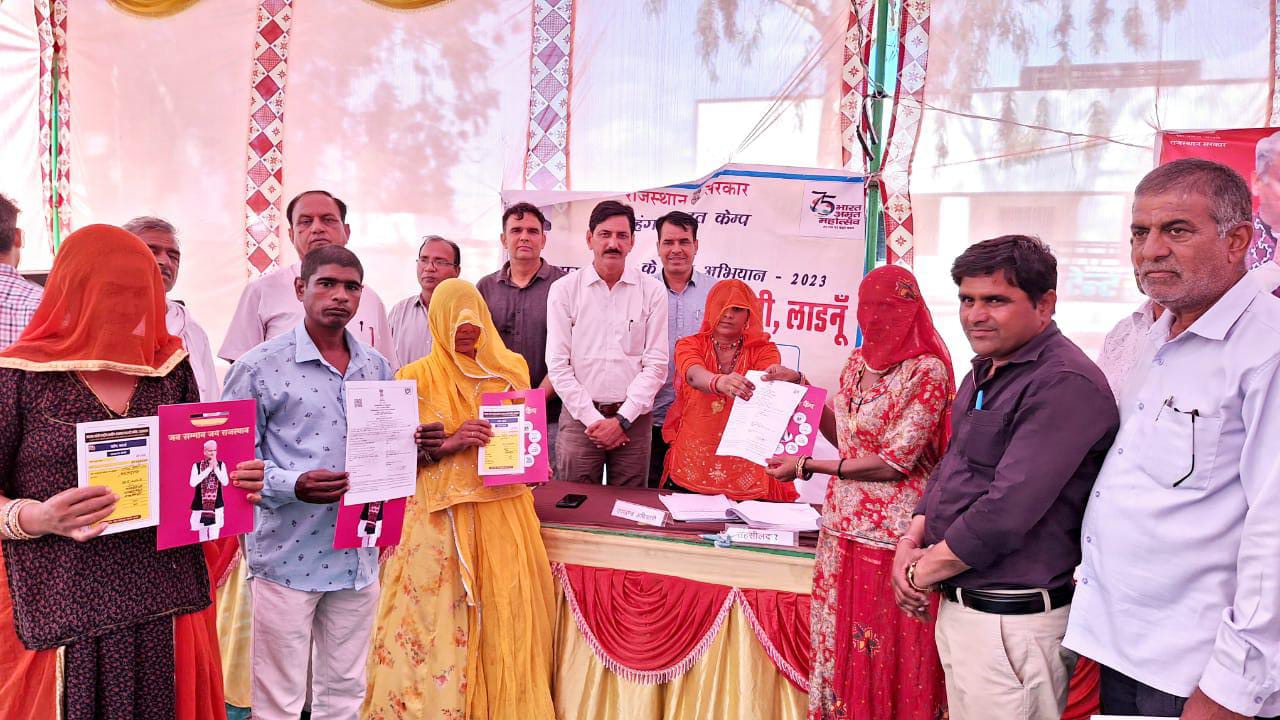 लाडनूं। निकटवर्ती ग्राम दुजार में आयोजित प्रशासन गांवों के संग अभियान में पंचायती राज विभाग ने 12 घुमन्तू, भेड़पालक और भूमिहीन परिवारों को निःशुल्क पट्टे जारी किए हैं। उपखंड क्षेत्र में दुजार व बाकलिया ग्राम पंचायतों में महंगाई राहत कैम्प और प्रशासन गांवों के संग अभियान शिविरों का आयोजन किया गया। इनमें दुजार ग्राम पंचायत के महंगाई राहत कैम्प में 606 और बाकलिया ग्राम पंचायत में 586 परिवारों को सरकार की 10 लोक कल्याणकारी योजनाओं में पंजीयन कर मुख्यमन्त्री गारंटी कार्ड प्राप्त किया।