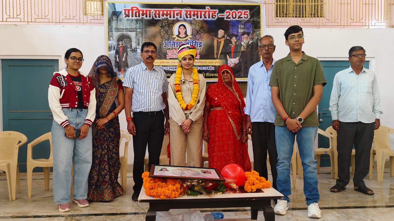लंदन यूके की मैनचेस्टर यूनिवर्सिटी से हासिल की ‘आर्किटेक्चर एण्ड अर्बेनिज्म’ में मास्टर डिग्री मीठड़ी की बेटी अनिशा जांगिड़ को इस उपलब्धि के लिए किया गया गांव में सम्मानित