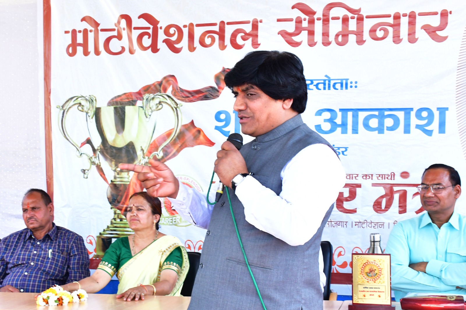 आकाश ने विद्यार्थियों को आह्वान किया कि वे दसवीं के बाद ही लक्ष्य बनाकर पढ़ाई करें ताकि वह अपने और अपने परिजनों के सपनों को साकार कर सकते हैं। उन्होंने लक्ष्य की प्राप्ति के लिए एकाग्र भाव को आवश्यक बताया। मोटिवेशनल गुरू ने एक विद्यार्थी द्वारा जीवन में डिग्री जरूरी होने के प्रश्न का जवाब देते हुए कहा कि डिग्री केवल कॅरिअर निर्माण में आवश्यक होती है। लेकिन जीवन निर्माणस में स्किल्स का होना जरूरी है। क्योंकि व्यक्तित्व ही सफलता का आधार है। कार्यक्रम में प्रिंसिपल डॉ. कमला शर्मा ने विद्यालय विकास की यात्रा को प्रस्तुत किया। वहीं विद्यार्थियों द्वारा प्रस्तुत कार्यक्रमों को भी खूब सराहा गया। प्रारम्भ में आगंतुकों का स्वागत अध्यापक संजय कुमार बांगडवा, विद्यालय विकास समिति के किशोर सिंह परिहार, अंजना चैधरी ने किया। सेमिनार में विद्यार्थियों की जिज्ञासाओं का समाधान भी किया गया। कार्यक्रम का संचालन रोहिताश सैनी ने किया।