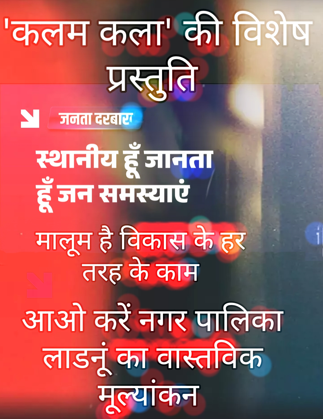 लाडनूं (kalamkala.in)। नगर पालिका बोर्ड को पांच साल होने जा रहे हैं। इन पांच सालों के दौरान कैसी-क्या गतिविधियां हुईं और क्या-क्या कमियां रहीं। यह आकलन किया जाना आवश्यक है। कितने-क्या काम नगर पालिका ने शहर के विकास के लिए और जनहित के लिए किए-कराए तथा कौन से काम अधूरे रहे या नहीं हो पाए, इन सब पर भी विचार किए जाने आवश्यक है। इस सम्बन्ध में परस्पर सोच और दृष्टि का मतभेद भी निश्चित ही मिलेंगे, लेकिन सभी के संयमित और तथ्यात्मक विचारों को ‘कलम कला’ स्थान देकर प्रकाशित करेगा। यह सब आगामी नगर पालिका चुनाव और आने वाले बोर्ड के लिए भी आदर्श मूल्यांकन सिद्ध हो, इसका ध्यान अवश्य रखें।