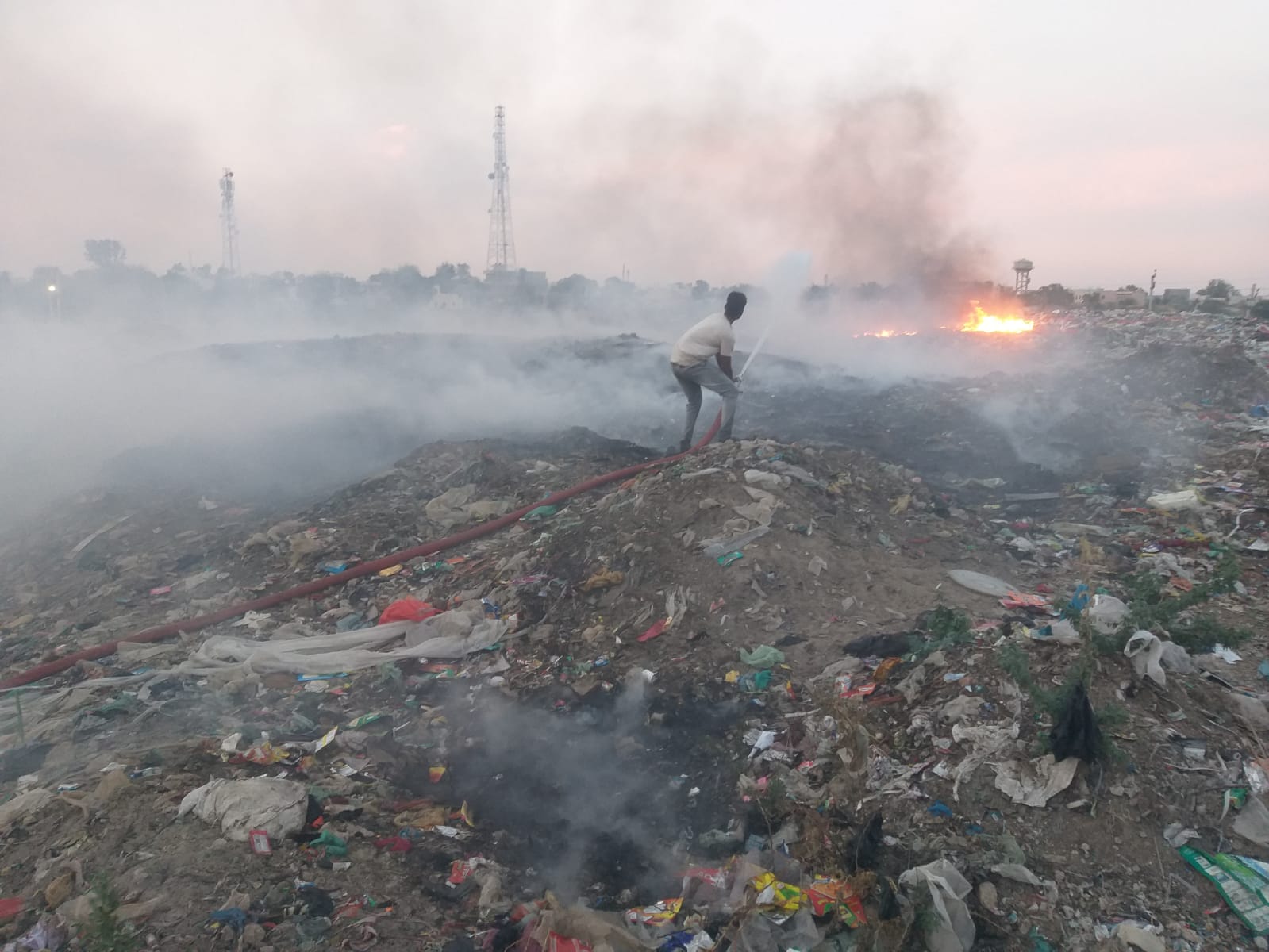 कुचेरा (रिपोटर मेहबूब खोखर)। शहर के कोटेलाव क्षेत्र में डंपिंग ग्राउंड में शनिवार शाम को अचानक आग लग गई। डंपिंग यार्ड में आग लगने के कारण आसपास के इलाकों में धुआं फैल गया था। आग इतनी भयंकर थी कि लपटें और धुएं का गुबार देखा जा सकता था। इस पर फायर ब्रिगेड के कर्मचारियों अजय जावा व रामलाल मारुका ने काबू पाया। कर्मचारी अजय जावा ने बताया कि आग लगने की सूचना उन्हें फोन पर स्थानीय लोगों ने दी। सूचना मिलते ही वे अपनी टीम के साथ मौके पर पहुंच गए और करीब एक घंटे की मेहनत के बाद आग पर काबू पा लिया। आग लगने के कारणों का पता नहीं चल पाया है। प्रत्यक्षदर्शियों ने बताया कि शनिवार शाम मौसम के अचानक करवट बदलने से तेज हवाएं चलने लगी, जिससे आग देखते ही देखते चारों ओर फैल गई।